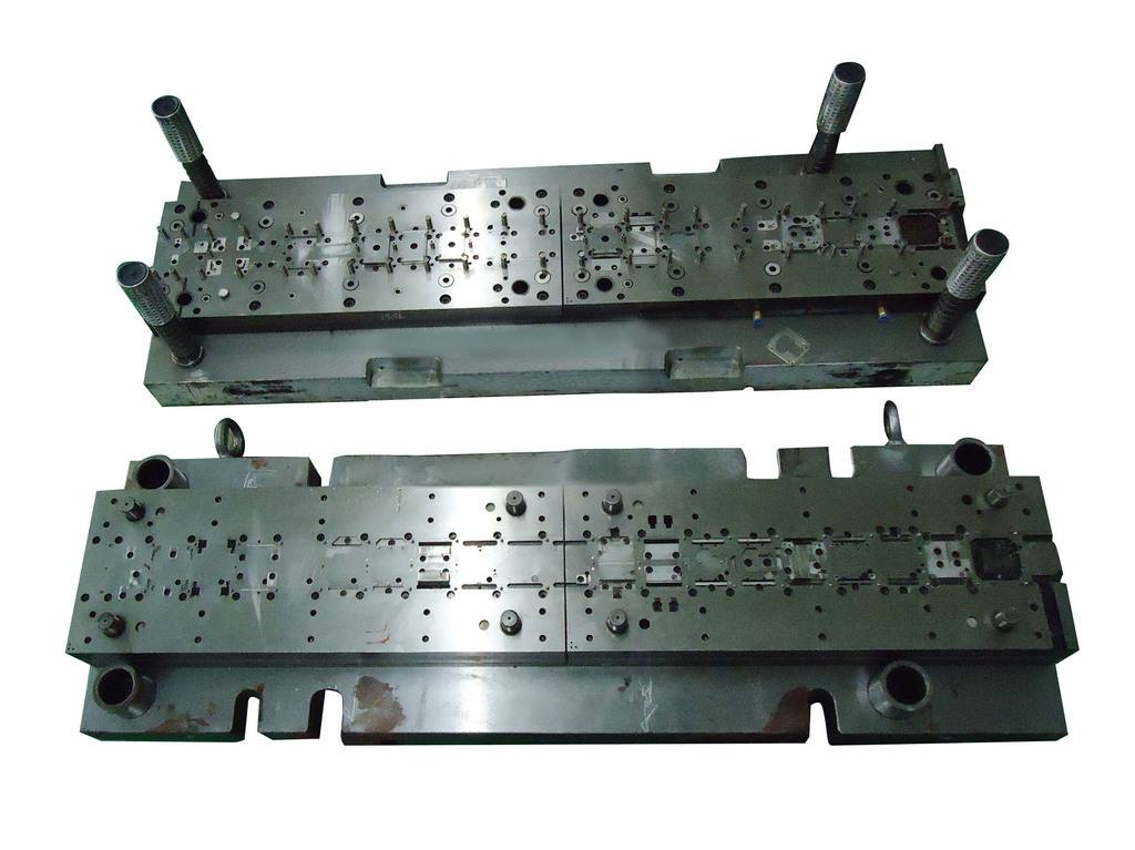 對(duì)策:a、.解決跳屑、屑料阻塞、卡模等問(wèn)題; b、注意送料,及時(shí)修剪料帶,及時(shí)清理模具;c、修改設(shè)計(jì),增加凸模整體強(qiáng)度,減短凹模直刃部尺寸,注意凸模刃部端面修出斜度或弧形,細(xì)小部后切;d、小凸模長(zhǎng)度磨短相對(duì)大凸模一個(gè)料厚以上;e、修改設(shè)計(jì);f、控制凸凹模加工精度或修改設(shè)計(jì)間隙,細(xì)小部沖切間隙適當(dāng)加大;g、調(diào)整沖壓油滴油量或更換油種;h、檢查各成形件精度,并施以調(diào)整或更換,控制加工精度;i、研修或更換;j、更換導(dǎo)柱、導(dǎo)套,注意日常保養(yǎng);k、更換使用材質(zhì),使用合適硬度;i、更換導(dǎo)料件; m、修正,墊片數(shù)盡可少,且使用鋼墊,凹模下墊片需墊在墊塊下面。